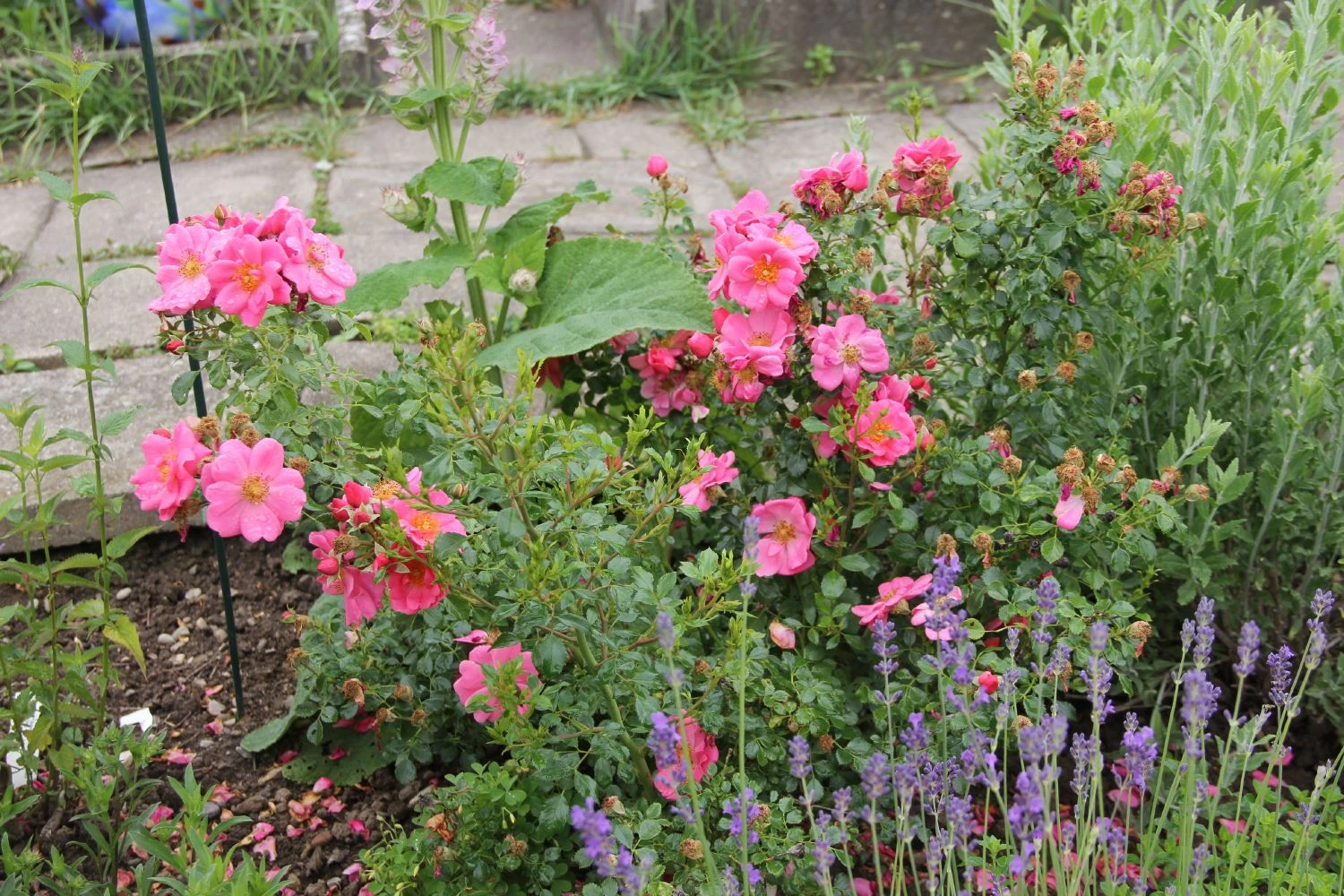 Die Rose ‚Bienenweide‘ in rosa hat einen intensiven Blütenflor mit reicher Nachblüte. Diese Rose ist öfterblühend, sehr robust und gesund.